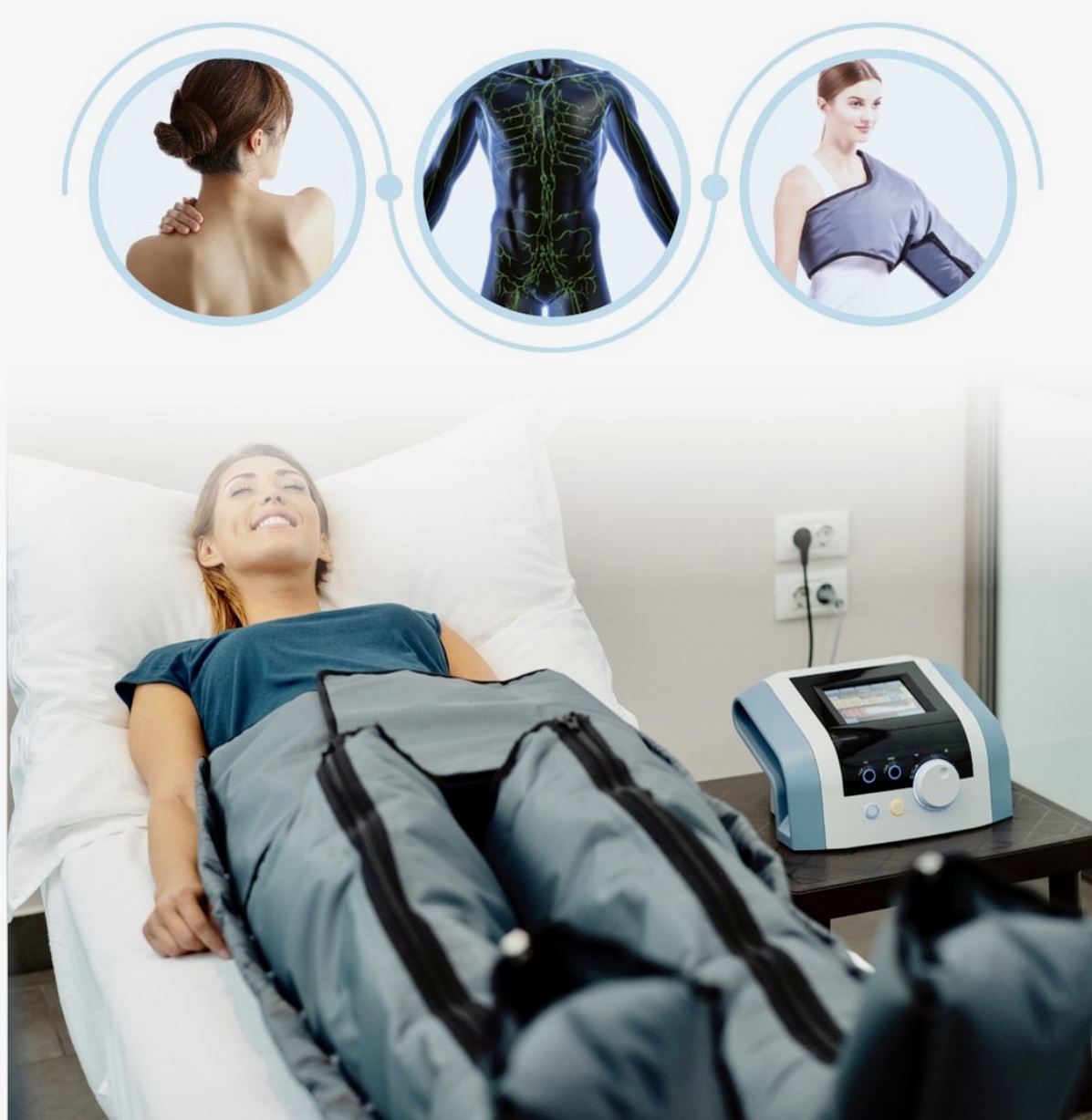 A drenagem linfática é um método terapêutico bem estabelecido e clinicamente comprovado que oferece resultados imediatos e visíveis. O aplicador especial constituído por câmaras em cadeia proporciona uma massagem suave que estimula a circulação natural da linfa através do corpo.